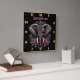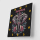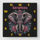 An intricately designed elephant stands majestically, adorned with beautiful floral patterns. The soft light of dawn enhances its elegance, symbolizing strength and beauty in nature.