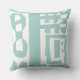 Floral Decal Ethnic Print Duck Egg Blue White Throw Pillow