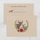A wedding rsvp featuring an illustration of red flowers, holly, and greenery arranged around the busts of a buck and a doe. Look for matching wedding invitations and more at Jill's Paperie.