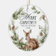 Floral Deer Elegant Modern Merry Christmas Ceramic Ornament