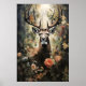 Floral Deer Forest Print, Dark Academia Poster