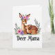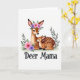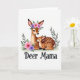 Designed with a tender nature scene, the front features an adult deer standing calmly with a small deer nestled close, their gentle eye contact suggesting closeness and trust ❤️. The adult deer has warm brown tones, long lashes, and a crown of pink and purple flowers with green leaves resting between its ears. The younger deer leans in with a soft, spotted coat, looking up as if reassured by the older deer’s steady presence. Everything sits on a bright white background that keeps the focus on their earthy colors and the fresh floral accents 🌼. A small cluster of matching blossoms rests near their feet, adding a quiet touch of romance-like devotion through the way the pair stays tucked together. Centered beneath the illustration is the phrase “Deer Mama” in thin, flowing black lettering. The shading is light and smooth, with gentle gradients along their faces and bodies to give a soft, cozy depth. The flowers at the bottom echo the crown’s pinks and purples, with leafy greens fanning outward over a faint gray shadow on the ground.
