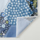 Denim and floral patches blend in a seamless decor. A fashionable statement, ideal for textile decor.