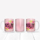 A stylish white ceramic mug featuring a vibrant floral design and the uplifting message "Bless My Blooms" on a soft pink background. Perfect for adding charm to any coffee or tea time.