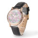 Floral designed women wrist watch with Black Leather strap. Pinkish dial with Roses and Girly artwork. Square Dial suits the best.