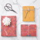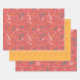 Floral doodles in orange and red wrapping paper sheets