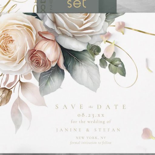 This wedding suite with it's lush, dramatic florals from creamy white to blush pink, gold swirl accents and beautiful watercolor backgrounds, creates an elegant, romantic vibe, giving just a hint of what guests can expect on your big day. This eye-catching RSVP card on a background of Spanish green, provides a template to easily add your details in luxurious gold text. Search ID1022 to see all the products in this wedding suite.