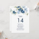 Floral Dusty Blue Table Number 14 Wedding Seating