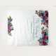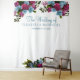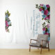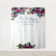 Elegant photo booth custom wedding couple backdrop with beautiful fuchsia pink, and dusty blue flowers with foliage and leaves. Easy to personalize with your event's title, name, and date.
