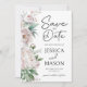 Watercolor floral blush, dusty rose peonies save the date wedding invitation.