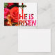 Floral image with cross and "He is Risen" text on a blank note card.