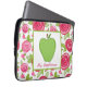 An electronics bag for teachers featuring a hot pink roses floral pattern background. Personalize with your name under green apple.