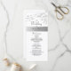 Elegant, modern boho, rustic, chic black and white wedding program with vintage silver floral lace and string lights.