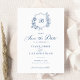 Floral Elegant Roses Crest Monogram Save the Date Wedding Invitation. Traditional Wedding Invitation. Floral Royal Blue Wedding Monogram Crest Save the Date Card. Vintage Floral Crest Save the Date Invitation