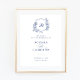 Floral Elegant Roses Monogram Crest Wedding Welcome Sign. Royal Blue Floral Wedding Welcome Sign. Vintage Botanical Floral Wedding Crest