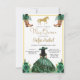 Floral Emerald Green Gold Boots Horse Quinceanera Invitation