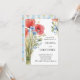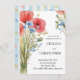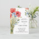 "Romantic engagement party invitation decorated with watercolor red poppies and delicate blue flowers. The elegant floral design combined with modern typography creates a timeless and stylish invitation, perfect for celebrating love and commitment."