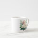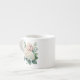 This lovely espresso cup is shown in white with a pretty floral hydrangeas watercolor print in shades of blush pink.