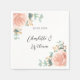 A chic white background. Decorated with a rose gold and blush pink floral, flower (peony)and green watercolored eucalyptus leaves, sprigs, greenery faux gold sprigs. Personalize and add your names and the wedding date.