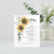 Create a modern Sunflower Floral Wedding invitation card with this cute template featuring beautiful rustic floral bouquet, geometric gold effect frame, with modern simple typography.