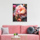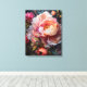 A vivid close-up of blooming peonies and roses, showcasing soft flowing petals in shades of pink, peach, and white against a dark background. This beautiful floral artwork brings life and elegance to any room.