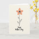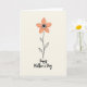 Designed with a single stylized flower centered on a smooth cream background, this card keeps the focus on one gentle bloom ❤️. The flower has five rounded petals shaded in soft peach-salmon, outlined in black with a slender stem and a few simple leaves that lean slightly as if reaching toward someone. At the middle sits an eye-like circle with a deep black center and a small white highlight, giving the bloom a quietly attentive look that feels affectionate and close. Beneath the illustration, the words “Happy Mother’s Day” appear in flowing black lettering, placed low and centered so it balances the stem above. The limited palette and crisp outlines create a calm, tender mood, like a small gesture shared between close family or friends 🌼. The open space around the flower makes the design feel airy, drawing your gaze back to the petals and that watchful center. The petals are peach-salmon with thick black outlines, and the center is a dark circle with a bright white dot.
