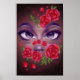 A face with roses all around. Very vibrant, as well as a slight bit of texture in the background. A perfect poster to however you see fit.