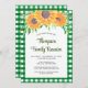 Invite your family to their gathering with this floral family reunion invitation which is decorated with watercolor sunflowers and foliage on a green gingham background.
