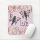 On this whimsical mouse pad is two floating fairies between sketched flowers on a pink backdrop creating fantasy childlike vibes. Can be customized with a name. Part of the Floral Fantasy Fairies collection.