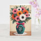 This design shows a cheerful bouquet of multi-petaled flowers arranged in a smooth teal vase, with soft coral pink, orange, and white blooms gathered close like a friendly hug ❤️. Each flower has a deep black center that adds contrast, while leafy greens fill the gaps and make the arrangement feel full and lively. A bright fuchsia ribbon is tied around the vase in a neat bow, giving the scene a sweet, caring touch as if someone dressed it up just for her. The message “Happy Mother’s Day” sits prominently on a small white label on the front of the vase, with the lettering in a dark tone that’s easy to read. Below, the vase rests on a delicate white lace doily, and the lace edges soften the look against the warm brown tabletop. Gentle, diffused light creates mild shadows and a calm, cozy mood, like a quiet moment shared over flowers 🌼. Behind everything is a creamy, muted background that keeps the focus on the teal vase, the fuchsia bow, and the warm-toned blossoms.