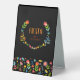 Fiesta Floral Table Tent Sign. This traditional fiesta invitation is created with multi-colored flowers and leaves on a black background that can be changed to any color you prefer using the Zazzle edit tool! Additional party supplies and decorations are available at Metro-Event.com and Metro-Events on Zazzle.