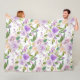 *~* Floral Flowers Pattern Print Lavender White Fleece Blanket
