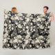 Floral Flowers Wildflowers Leaves Black Background Fleece Blanket