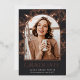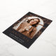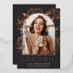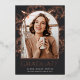 Elegant photo graduation announcement features a vertical or portrait oriented photo in a unique arched layout, on a charcoal black background with rose gold foil floral and botanical trim. "Graduate" appears beneath, along with your graduate's name and school or college. Add a personal message to the back, along with an additional photo.