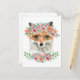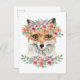 This design features watercolor portrait of a fox wearing a halo of flowers.