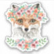This design features watercolor portrait of a fox wearing a halo of flowers.
