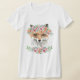 This design features watercolor portrait of a fox wearing a halo of flowers.