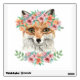 This design features watercolor portrait of a fox wearing a halo of flowers.