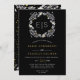 Floral frame gold confetti black white wedding invitation