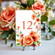 Floral frame with warm orange flowers wedding Table Number card. Guide your guests with these Verona Sunset wedding table number cards, featuring a beautiful watercolor design. A frame of delicate flowers and foliage, painted in soft orange tones inspired by the Verona sunset, gracefully encircles the table number. The watercolor technique provides a gentle, painterly effect, creating a timeless and elegant botanical feel.
