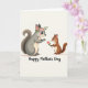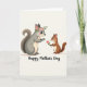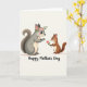 This design shows two sweet woodland animals sharing a gentle moment on a light cream background. On the left, a larger gray-furred creature stands with a soft blush on its cheeks and a calm, welcoming look, wearing a wreath of pink blossoms and green leaves. Facing it, a smaller reddish-brown companion leans forward with an affectionate gaze, offering a single pink flower held carefully in its tiny paws ❤️. Their eyes meet in a way that suggests trust and closeness, like a quiet “I’m thinking of you” between friends. The illustration uses rounded shapes and a softly brushed texture, with fluffy curled tails and detailed petals that add warmth without feeling busy. Near the bottom, a flowing line of text sits centered in a dark tone, leaving plenty of open space around the characters, and a small 🌼 detail echoes the floral theme. The pink flower is angled upward between them, with its bright petals and green stem standing out clearly against the pale background.