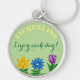 Enjoy each day spring garden. Personalize with your name in pale yellow text against pale green background. Pretty garden flowers. Yellow sunflower, blue yellow daisy, purple tulip. Original Graphic Artwork and Design by TamiraZDesigns. Lovely keychain gift. Visit my store for more original items: www.zazzle.com/tamirazdesigns