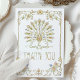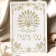 This wedding thank you card features a delicate gold frame adorned with watercolor wildflowers and soft botanical curves. The floral artwork includes blush pinks, cornflower blues, buttery yellows, and leafy greens, all illustrated with vintage charm and a light hand-painted touch. The frame design has an open, airy feel, offering a fresh and elegant presentation for romantic weddings.