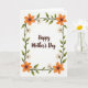Designed with a bright white background, the card centers a warm brown message in flowing lettering, positioned neatly in the middle of the page. Around it, a looping garland of olive-green vines curls into an oval frame, like two close friends leaning in to make space for the words. Tucked along the vines are large six-petaled flowers in sunlit orange, each with a darker, textured center that feels like a small heartbeat ❤️. Smaller cream-colored five-petaled blooms fill the gaps, softening the border the way a gentle touch softens a glance. The leaves shift subtly from lighter to deeper green, suggesting light and shadow as if the garland is catching afternoon sun. The text stays clear and easy to spot, with the brown lettering standing out against the white while the floral frame keeps the eye close. Orange blossoms and creamy petals repeat around the edges, with curling tendrils and clustered leaves forming a balanced ring 🌼.