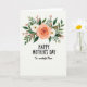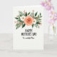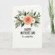 This greeting card features a soft ivory background topped with a lush floral garland that feels like a gentle hug ❤️. At the center of the bouquet, a large peach flower opens wide, its layered petals curling inward to a deeper-toned middle that draws your eye. Two smaller white blossoms sit nearby, their slim petals fanning out around warm yellow centers, like close friends leaning in together. Around them, leafy greens in mixed emerald and forest shades fill the upper area, with fine vein details that add natural texture. Tiny coral-pink berries dot the greenery on thin brown stems, adding little bursts of color like shared laughs 🌼. The main message sits centered beneath the flowers in dark lettering, with a second, smaller line placed just below it in a lighter, flowing style. The text stands out strongly against the pale background, leaving plenty of open space around it for a calm, airy look. The top half is filled with flowers and foliage while the lower half remains mostly open, anchored by the centered lines of dark text.