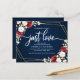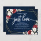 Beautiful and inexpensive burgundy floral geometric on navy blue rustic wood wedding invitations. Easy to personalize with your details. PLEASE NOTE: The envelopes are NOT INCLUDE; affordable A7 envelopes are available to purchase separately.