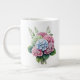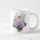 This jumbo size mug is shown in white with a pretty floral hydrangeas watercolor print.
