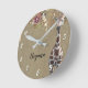 Floral Giraffe Rustic Brown Chic Personalized Round Clock