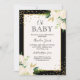 Floral Glitter Gold Black Stripes Oh Baby Shower Invitation