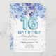 Floral Glitter Light Blue Happy 16th Birthday
